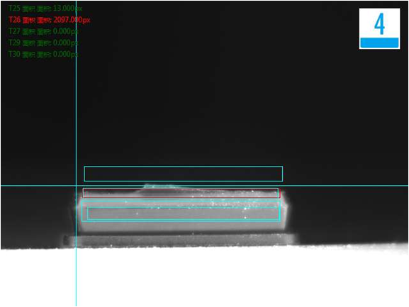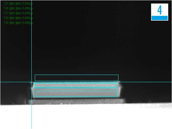 側面檢測不良品效果分析圖(粘膜、尺寸):NG