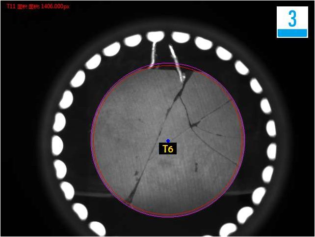 底部檢測崩裂不良品分析圖:NG